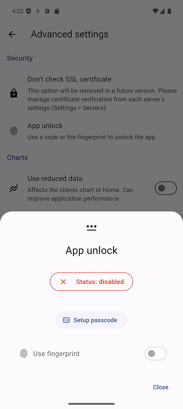 Fingerprint unlock allows you to open the app using biometric authentication.