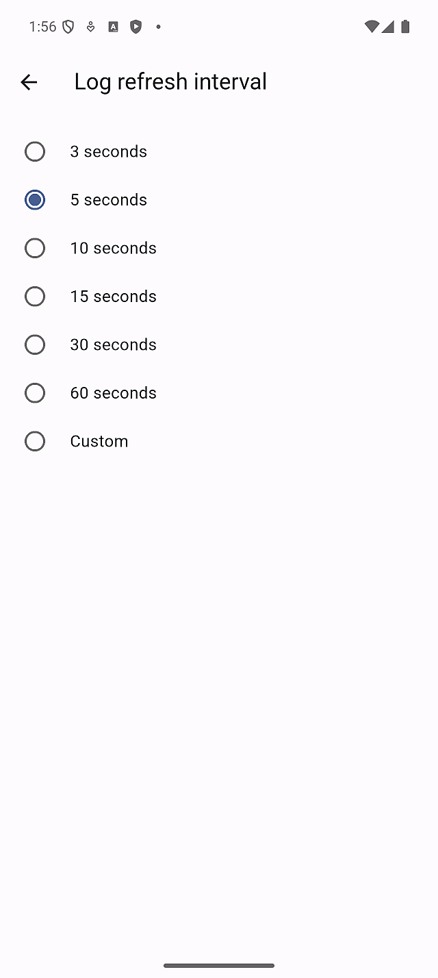 This setting controls how often log entries are fetched on the Logs screen.