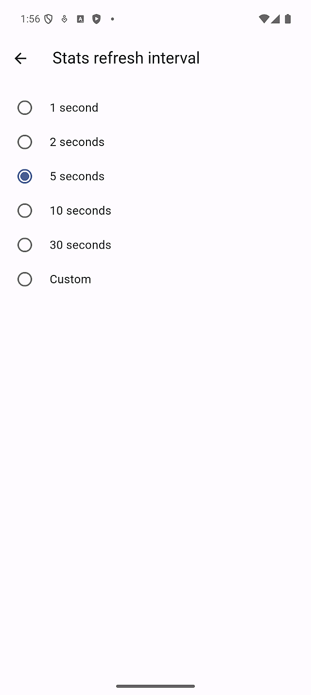 Use a shorter interval when you want near-real-time feedback on Home and up-to-date Statistics. Use a longer interval to reduce network requests and battery usage.